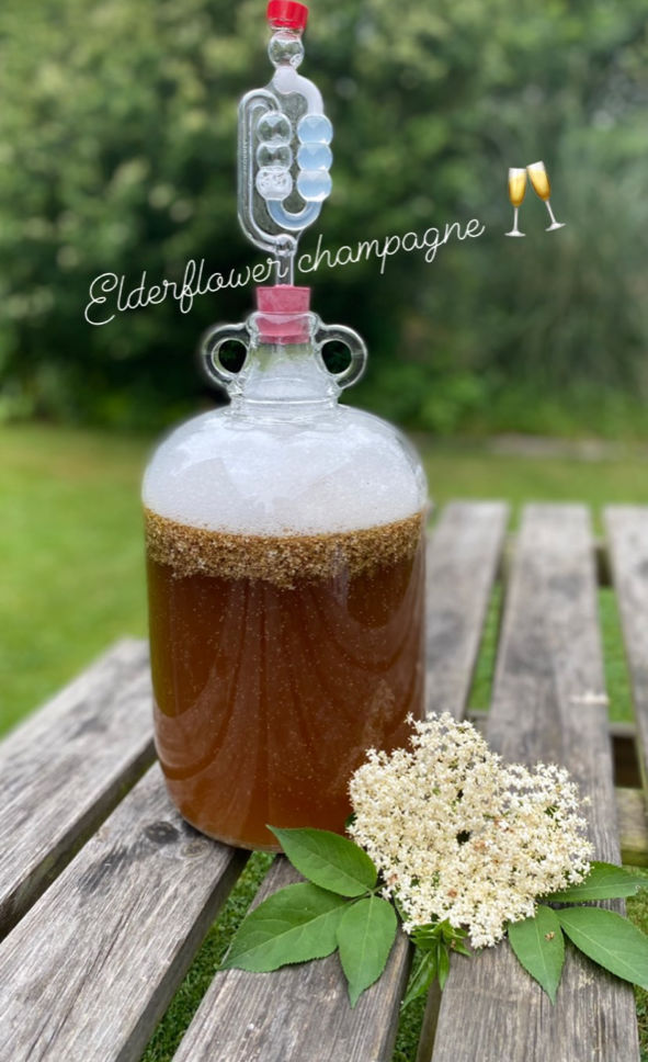 I took a fancy to having a go and used the flowers from the elderflower bush growing in the garden to make Elderflower Champagne.