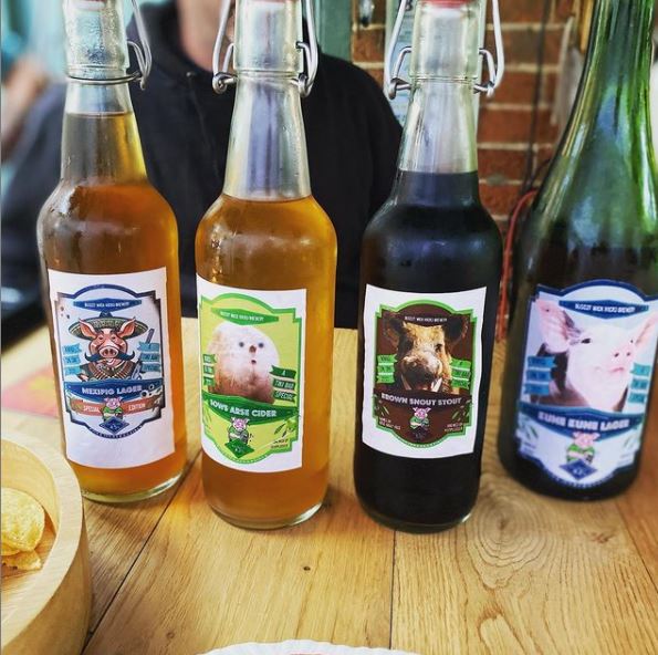 The first was a Kune Kune Lager (a Kune Kune Pig is a micro pig) then we had MexiPig, a mexican lager, Brown Snout Stout and the favourite ‘VPA’ -Vegan Pig Ale. Vegan because it has no finings in it. Finings are made from mollusc shells. And then we had a cider request and made Sows Arse cider.