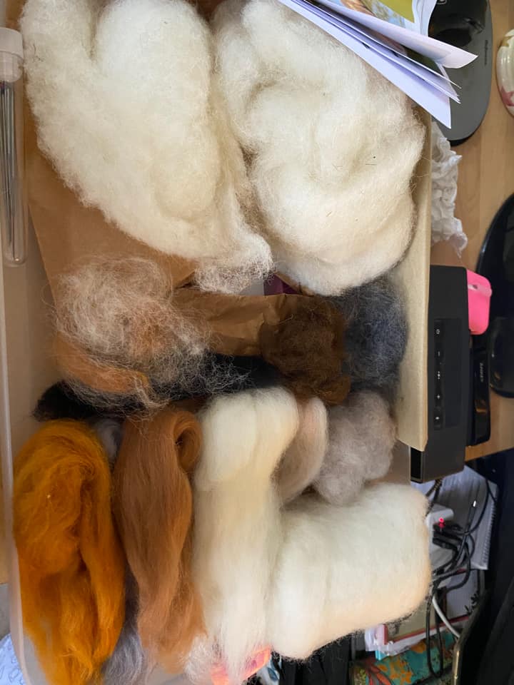 All of this wool to add to the wings and and the face and back before it really started looking like an owl!