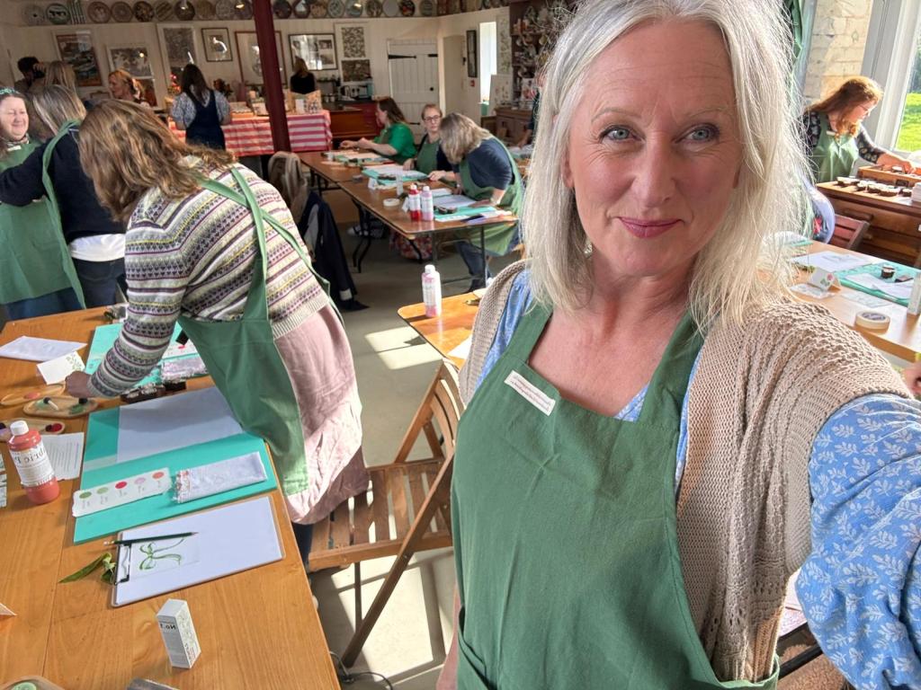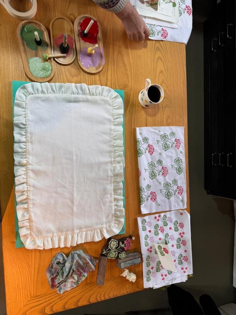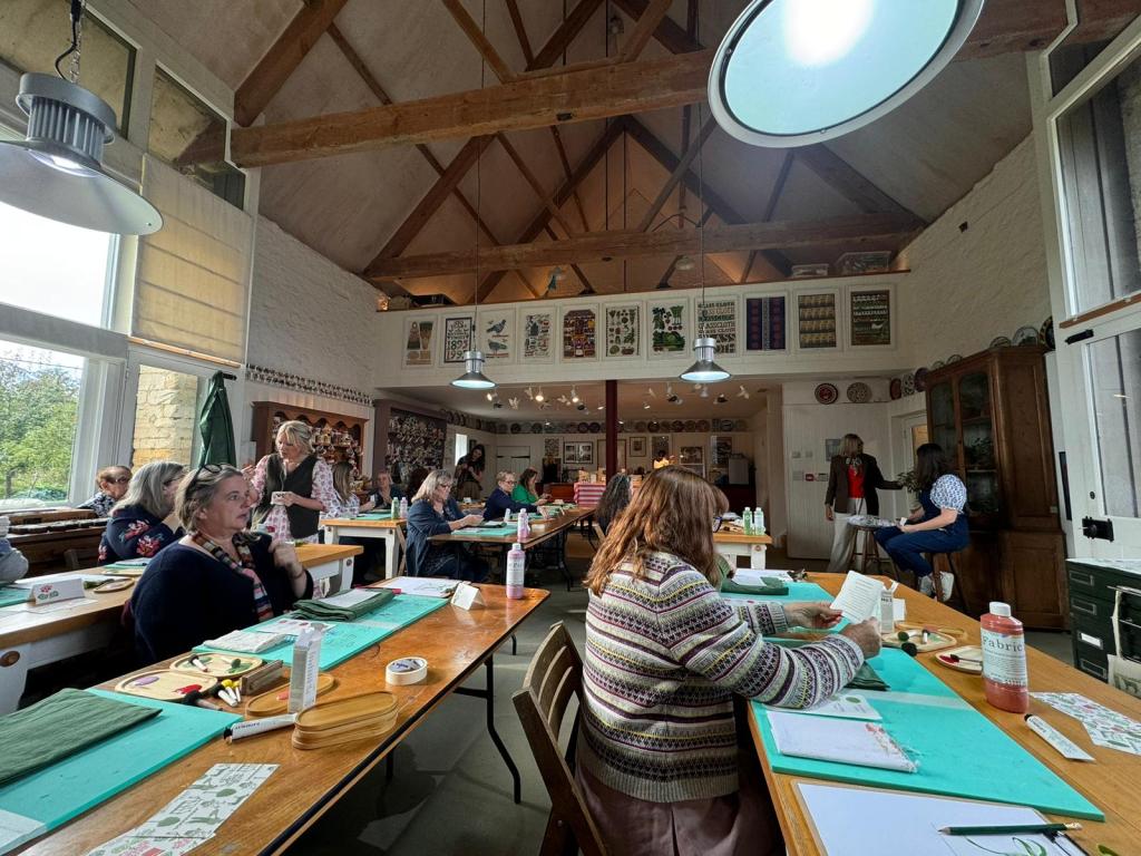 I met the wonderful Cath Kidston Padgham MBE today at the inspirational Charlie Dobbs Events Indian Block Printing Workshop using Cath’s designs! It was an amazing day in a truly amazing location. Charlie and her team were there on hand to welcome us upon arrival. Refreshments were served, vibrant coffee and indulgent cake served in pretty Emma Bridgewater pottery setting the scene for the day. The course was held at Ham Court in Bampton owned by Matthew Rice, illustrator and artist who introduced himself at the start of the workshop, which was a wonderfully ambient setting for the day. Fear not if you book onto Charlie Dobbs Event on your own because within seconds you’re friends with everyone and made to feel very welcome. At the start of the workshop was a discussion with Tess from the Indian block Print Co and Cath and we all were inspired by Cath and her honest viewpoint on her life in business and the highs and lows, and her inspiration for her fragrance range C. Atherly and her block designs with the Indian block print. Lunch was divine, totally Insta worthy with the candleit dining, warmed by a log burner and the most sensational food. After an afternoon of crafting and creations we all left ( albeit in a huge rainstorm) with warmth in our hearts for the wholesome day we had experienced and our creations tucked in our bags.