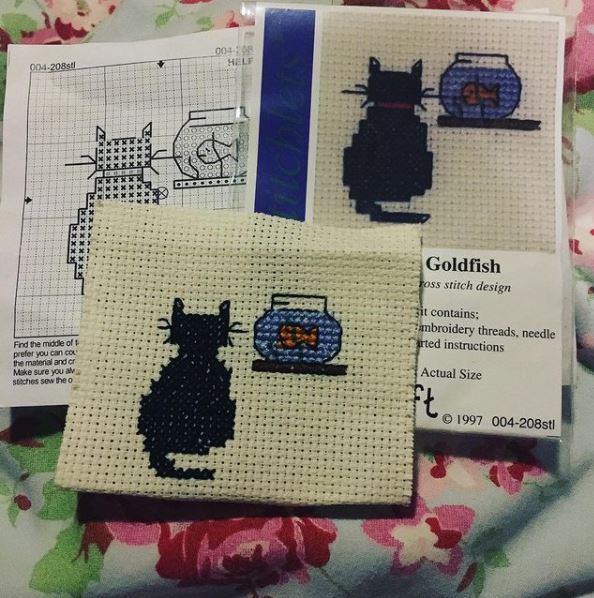 I got this little kit from Hobby Craft. I have a black cat and I also had a goldfish (RIP Fishy) and I made this cross stitch as a capture of this moment in time.