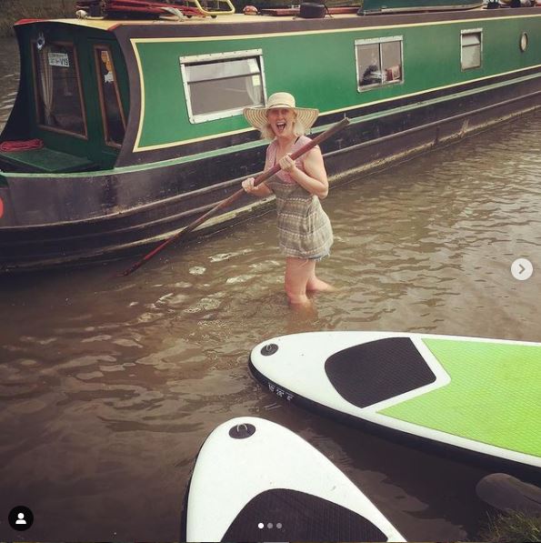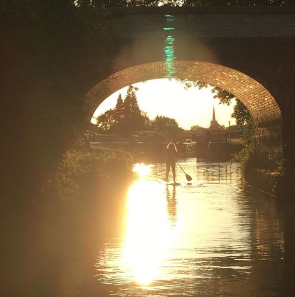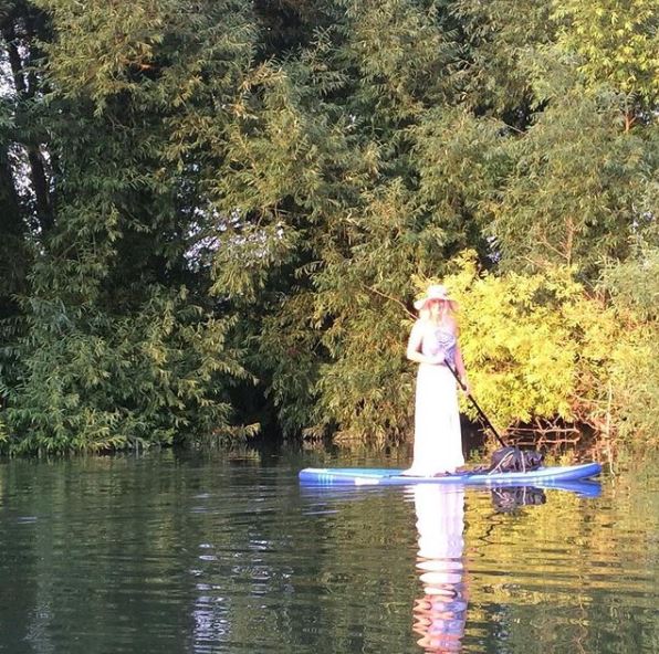 I never fall in and even paddle out in a hat and dress! But on a hot day , I love sliding off the board to have a wild swim. I have rescued a stuck barge on the river, I collect plastic, rubbish and fishing line from the river. In the autumn I take a tub abd collect blackberries from the riverbank. Sometime I paddle to the pub for a pint and some cheesy chips but mostly I enjoy the sunsets and the wildlife.